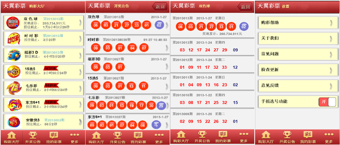 为电信系统定制开发的彩票销售服务系统客户端,用于彩票在线销售和中奖纪录查询。